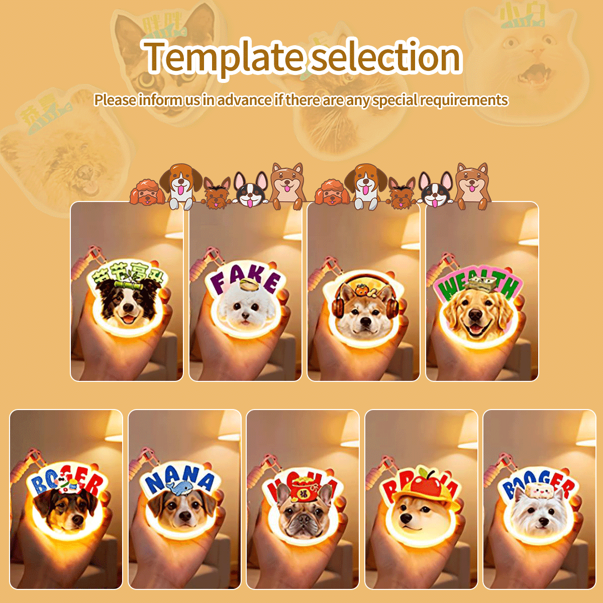 This personalized pet light turns your favorite cat or dog photo into a lovely glowing decoration. It is perfect for home, pet rooms, bags and leashes. The rear switch makes operation simple and convenient.